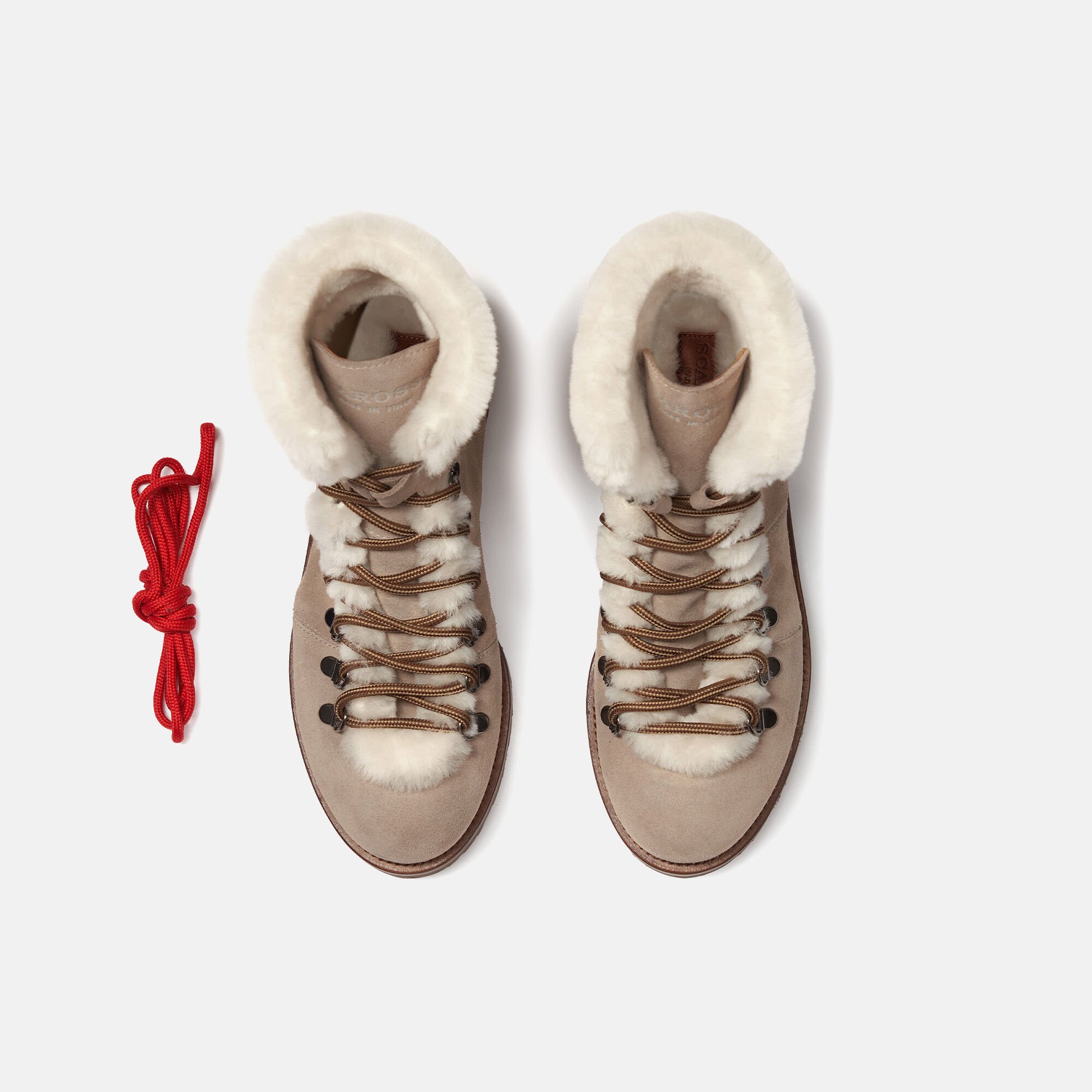 • Détails d’empeigne en mouton retourné